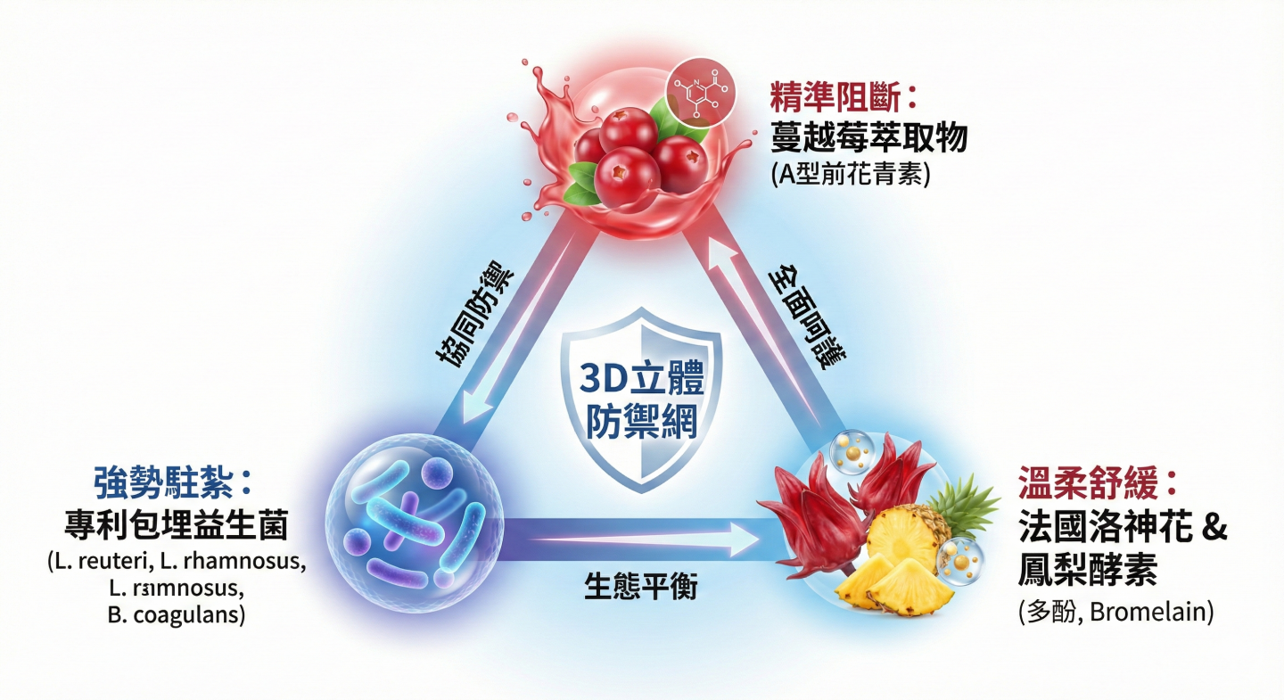 反覆的困擾,代表妳的身體防線正在示警。細菌的黏附力比妳想像中更強頑,光靠喝水或單一成分,往往擋不住它們的攻勢。