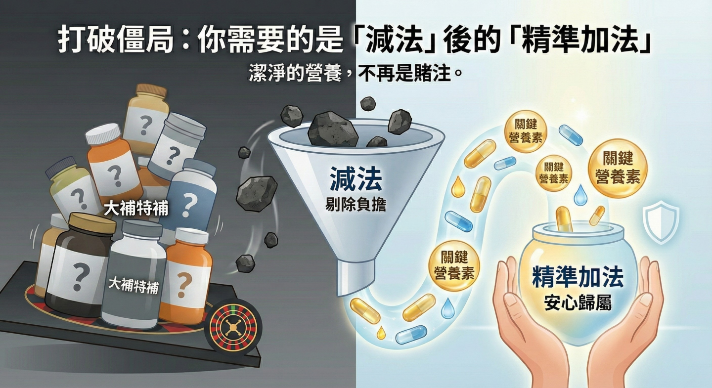 注意!你的營養攝取可能正在失衡。市面上許多追求「口感」的補給品,可能隱含較高的磷、鉀、鈉含量。對於重視健康管理、或飲食需嚴格控制的族群來說,這些多餘的攝取,可能成為身體沉重的負擔。