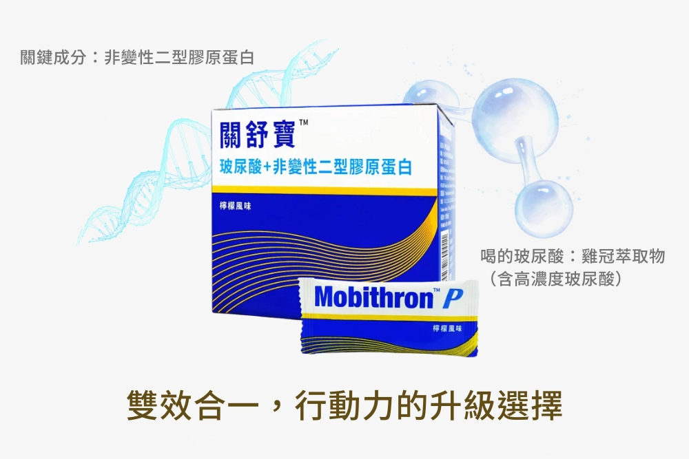 - 黃金雙效配方:結合「喝的玻尿酸」與「非變性二型膠原蛋白」,兩種關鍵營養素一次補足,是您維持靈活行動力的升級選擇。